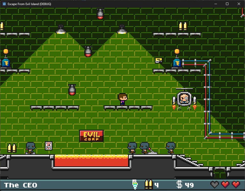 So I’ve been playing it too! It all functions great… but it’s too hard. Very hard games have their place, but Escape from Evil Island has not been an incredibly difficult game up to this point and I absolutely don’t want a huge difficulty cliff right at the final boss. (And yes, I cheated to get the screenshot up above more easily.)