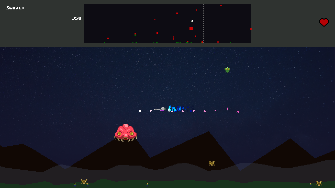 Last week I mentioned how sometimes I make games as fast as possible. Some time near the end of 2022 I decided I wanted to do that again, and since I keep intending to build a Defender clone (and then not), I figured it was time. (Or something like that; honestly, it was nearly two years ago so I only vaguely remember it anyway.)