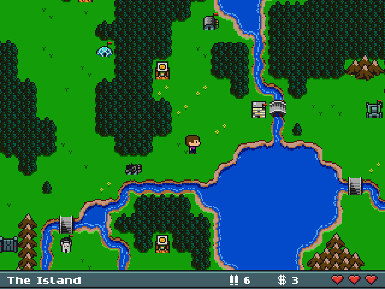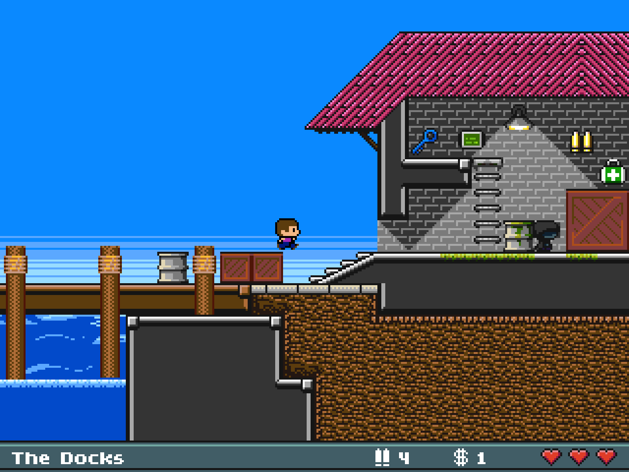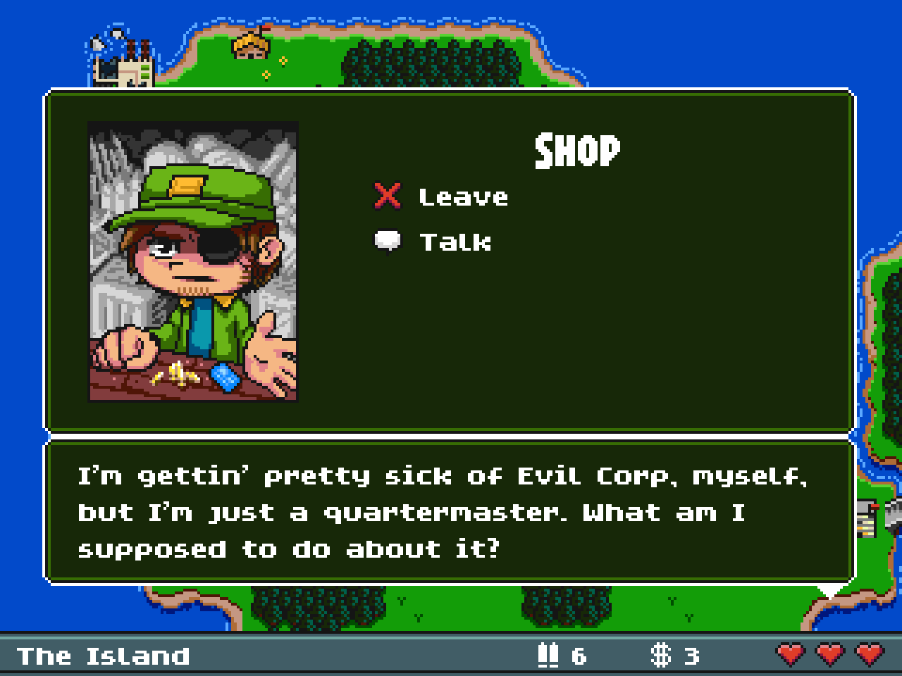 Escape from Evil Island is a level-based platformer that comes from the fond nostalgia I have for old DOS platformers like the Commander Keen, Crystal Cave, and Secret Agent series. There is the tiniest dash of “RPG elements” in the form of money and shops (including some passes that grant access to optional levels), but the overall progression is basically just working your way across the map.