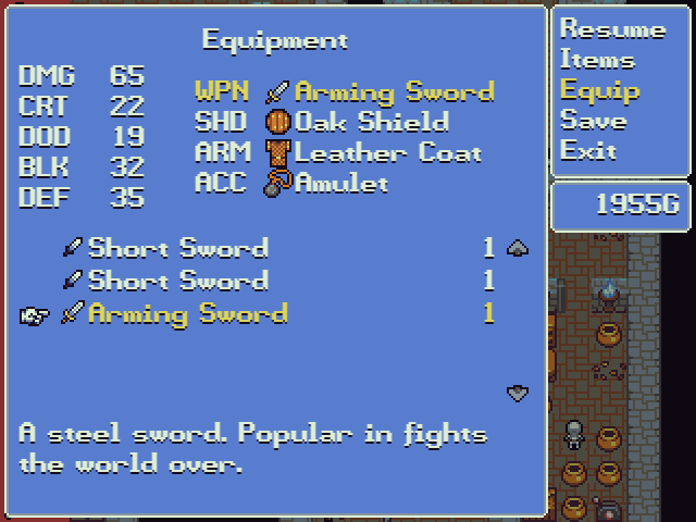 SimpleQuest is an intentionally straightforward RPG in the vein of early 1990s-era Dragon Quest or Final Fantasy. If you have played any of those games, then it will feel familiar.